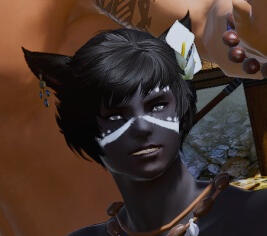 Notable facial features: Freckles dot along the bridge of his nose and spread across his cheeks. From the looks of it he looks Eorzean but on closer inspection there are signs he has Doman ancestry. He takes good care of his hair and skin.